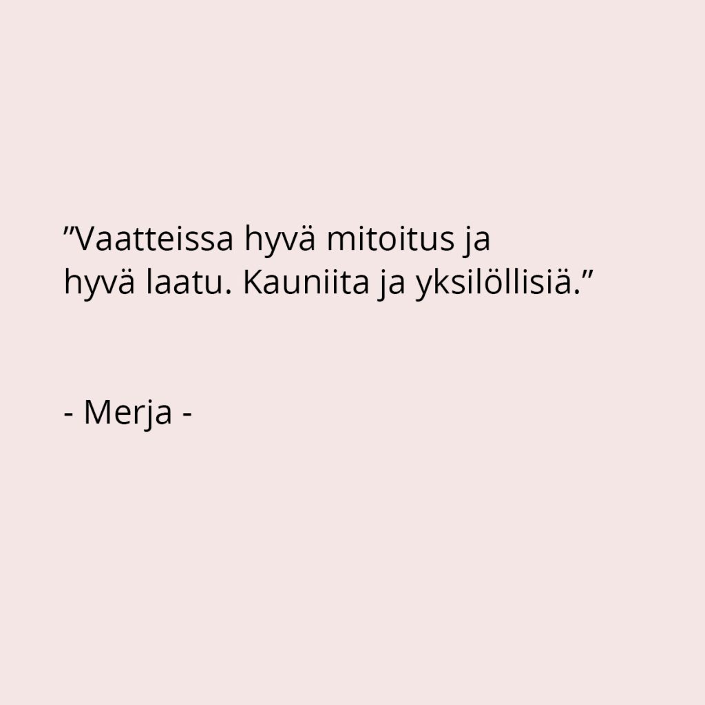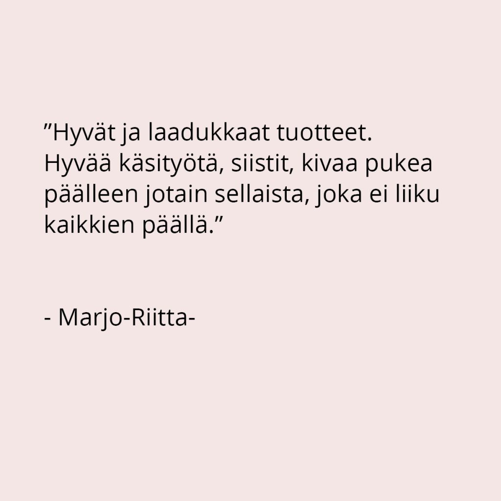 Löydät mittataulukkomme täältä! Mitat ovat vartalonmittoja, joten mittaa siis itsesi ja valitse mittojesi ja taulukon avulla itsellesi sopiva koko. Mikäli mieltäsi askarruttaa tuotteiden koko tai materiaali, soita rohkeasti, tai laita meille sähköpostia niin selvitetään pulma yhdessä.